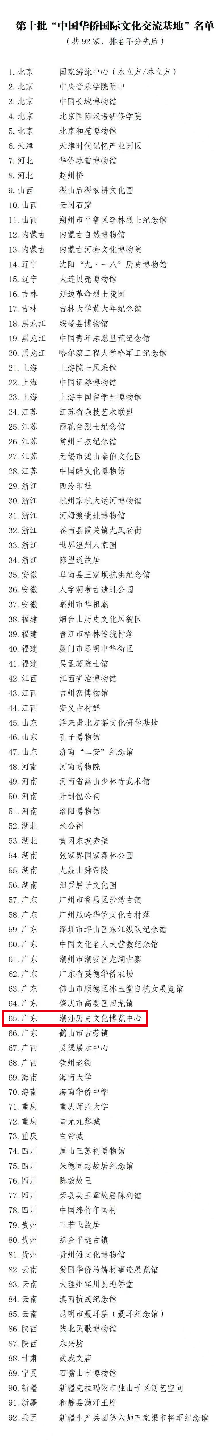 近日,中國僑聯(lián)研究確認92家機構(gòu)和單位為第十批“中國華僑國際文化交流基地”,其中,潮汕歷史文化博覽中心(簡稱:潮博中心)作為汕頭市唯一一家入選單位名列其中,與國家游泳中心(水立方/冰立方)、中國長城博物館、中央音樂學院附中等文化、教育單位共同喜獲榮譽稱號。