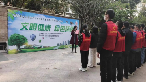 為深入踐行習(xí)近平生態(tài)文明思想,大力倡導(dǎo)文明健康、綠色環(huán)保生活方式,積極營造節(jié)能降碳濃厚氛圍,3月7日上午,由汕頭市人民政府國有資產(chǎn)監(jiān)督管理委員會主辦,汕頭市投資控股集團(tuán)有限公司及下屬企業(yè)汕頭市城市建設(shè)開發(fā)有限公司聯(lián)合協(xié)辦的主題為“文明健康、綠色環(huán)?!钡奈拿鹘】稻G色環(huán)保生活方式志愿宣傳活動在金港廣場小區(qū)舉行。