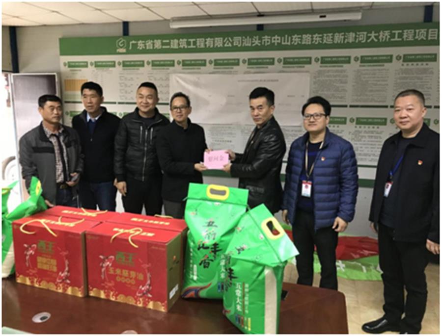2月9日,農(nóng)歷二十九,海晟公司黨支部書記、董事長李建汕同志帶隊(duì),專程來到新津河大橋項(xiàng)目工地進(jìn)行慰問,向留汕過節(jié)的工人致以新春的問候和祝福,并送上慰問金及大米、食用油等生活物資。李建汕表示,項(xiàng)目建設(shè)工人放棄佳節(jié)與親人團(tuán)聚的機(jī)會(huì),堅(jiān)守在建設(shè)崗位第一線,用實(shí)際行動(dòng)詮釋了為“亞青”保駕護(hù)航,為防疫減壓助力;他對這種“舍小家,顧大家”的精神高度贊揚(yáng),感謝大家為項(xiàng)目建設(shè)和疫情防控做出的貢獻(xiàn),祝愿大家在汕頭過一個(gè)歡樂祥和的春節(jié)。隨后,他還對建設(shè)單位提出要求,務(wù)必做好留汕工人春節(jié)期間的生活物資供應(yīng)和后勤保障工作,穩(wěn)崗留工和夯實(shí)安全生產(chǎn)兩手抓、兩手硬,穩(wěn)步推進(jìn)項(xiàng)目建設(shè)進(jìn)度,確保保安全、高質(zhì)量施工。