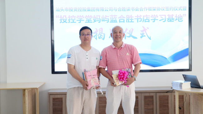 活動(dòng)現(xiàn)場(chǎng),在全體人員的共同見證下,吳少青、邱傳龍作為汕投控集團(tuán)和合勝讀書會(huì)代表簽署戰(zhàn)略合作協(xié)議,雙方將積極探索共建新思路,共同致力于在文旅項(xiàng)目開發(fā)、企業(yè)人才培養(yǎng)、打造學(xué)習(xí)型組織等方面開展更廣泛的深度合作。雙方還互贈(zèng)了書籍。